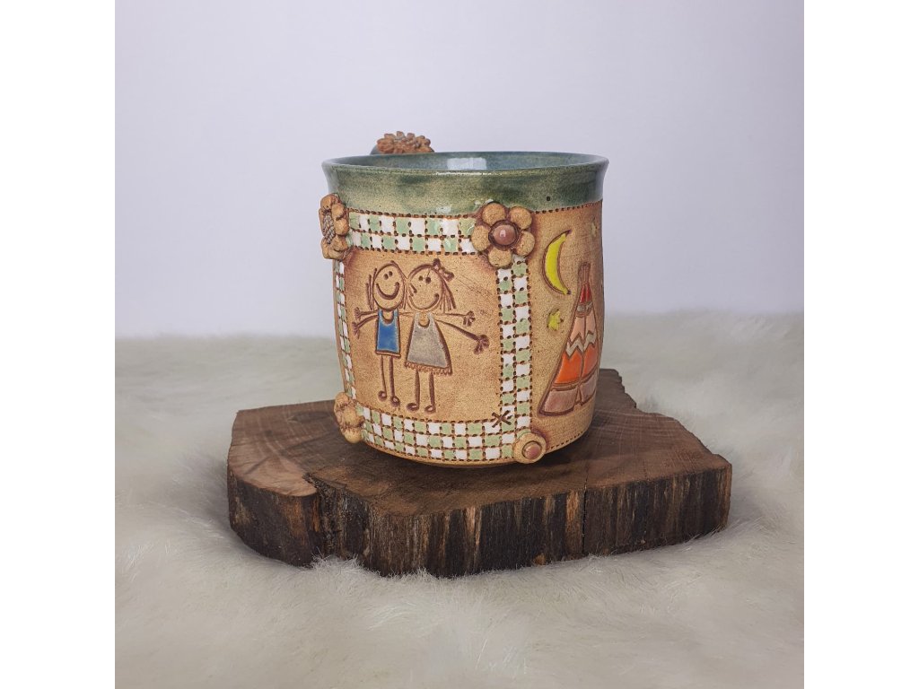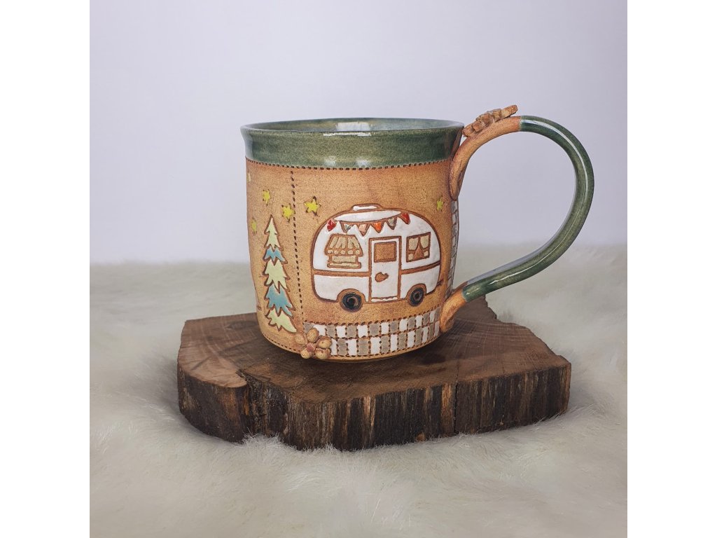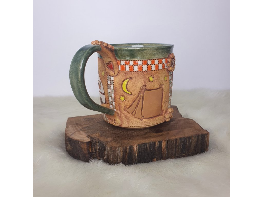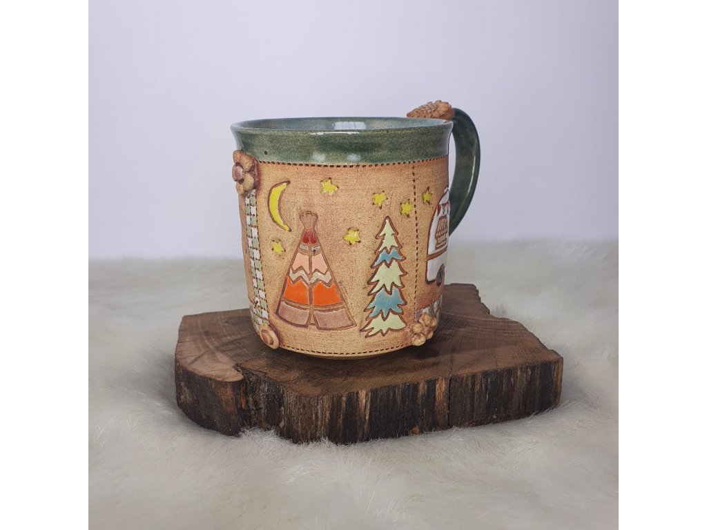 Keramický hrníček v originálním provedení s tématikou Kempování 350ml pro každodenní použití.