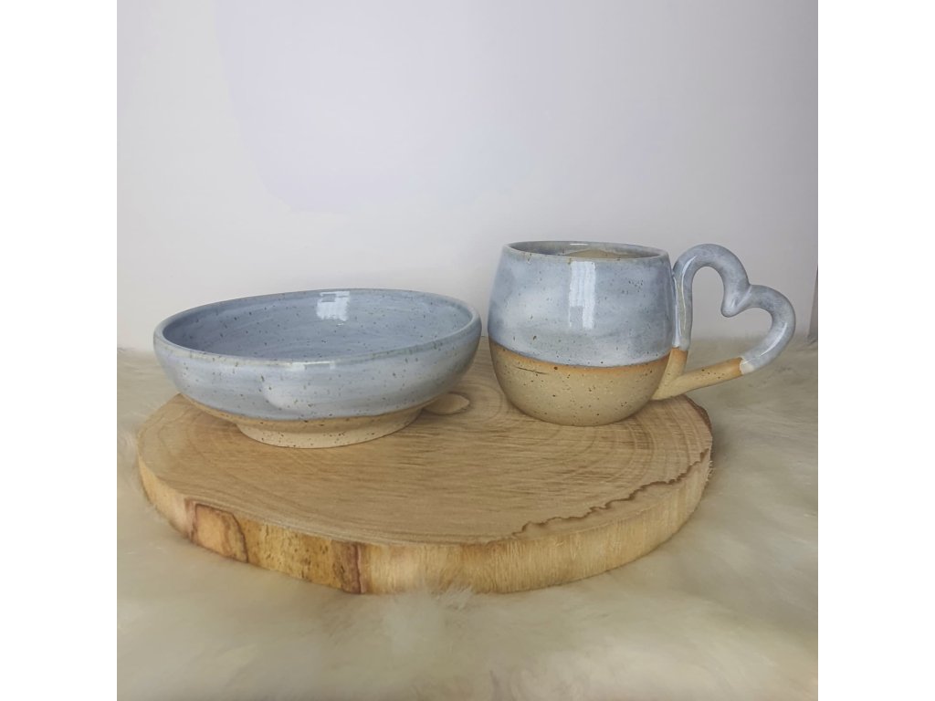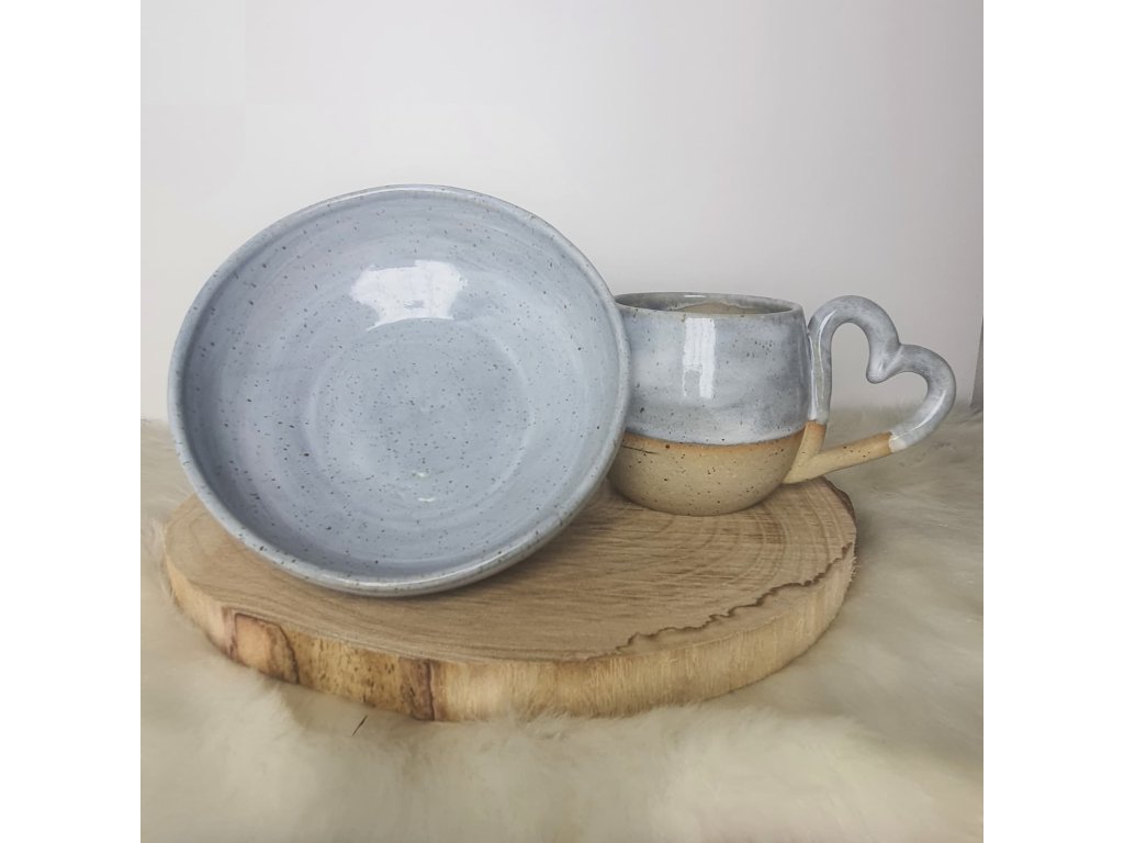Keramický snídaňový set v šedivé barvě pro každodenní použití.