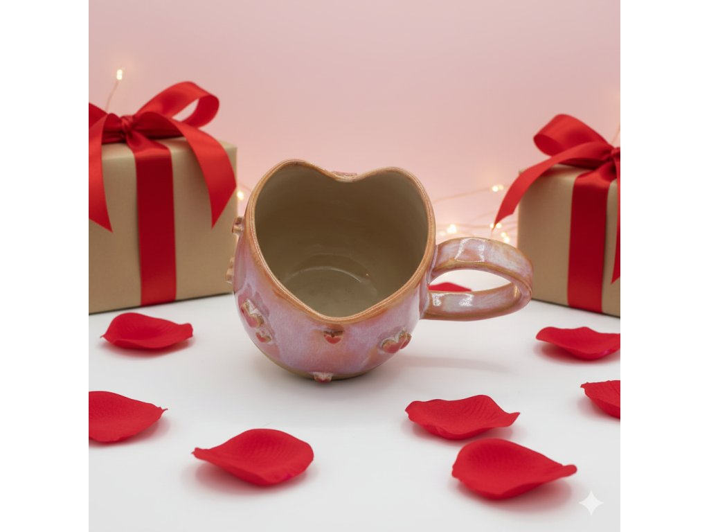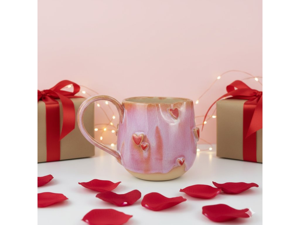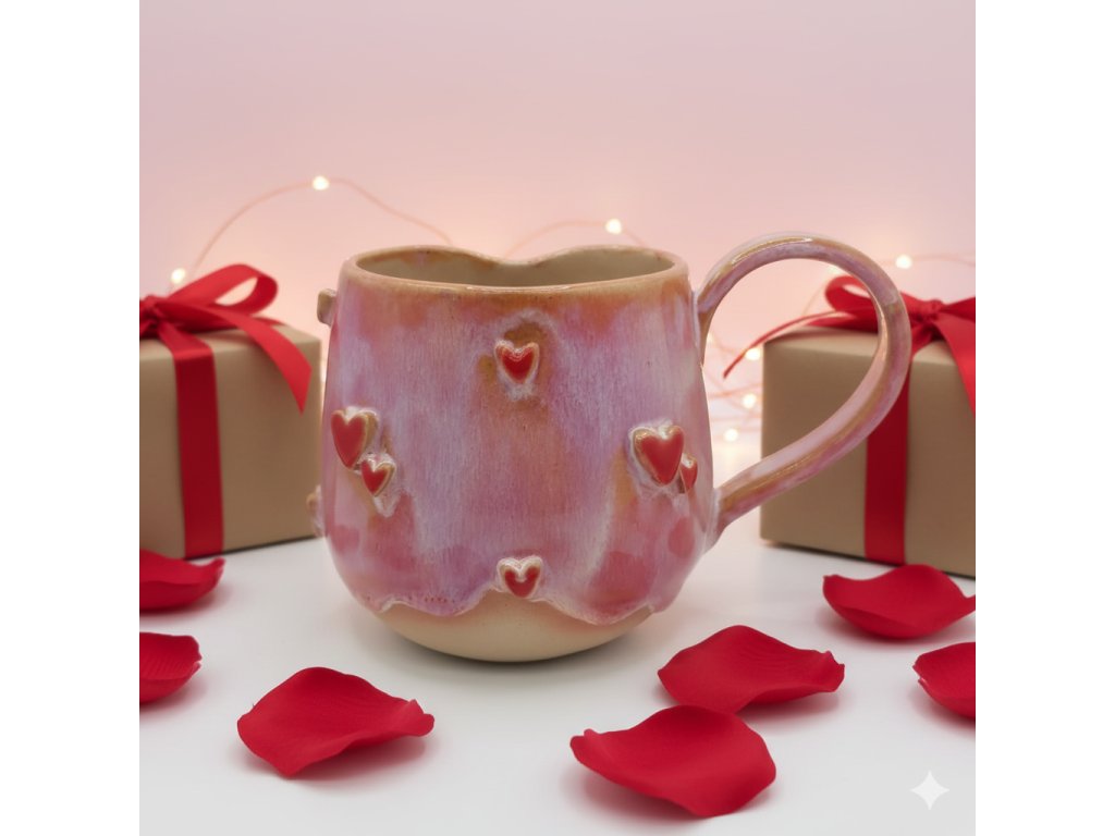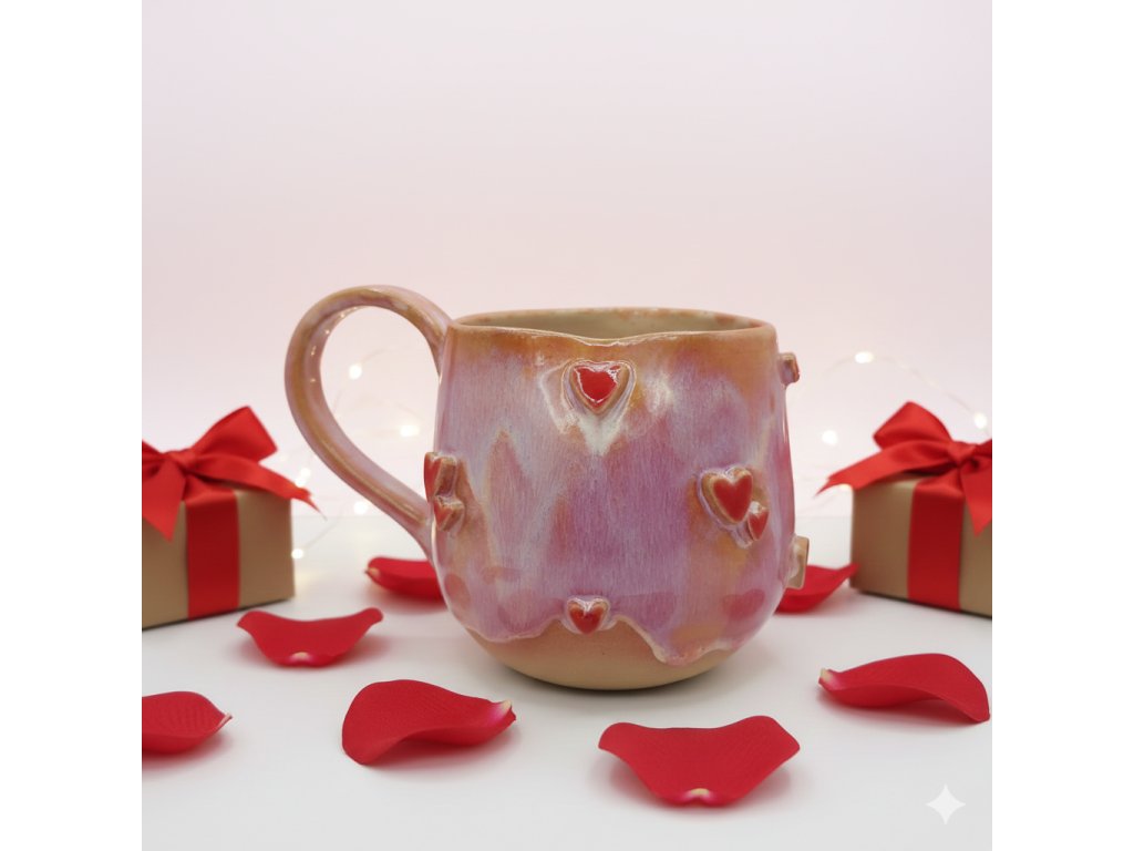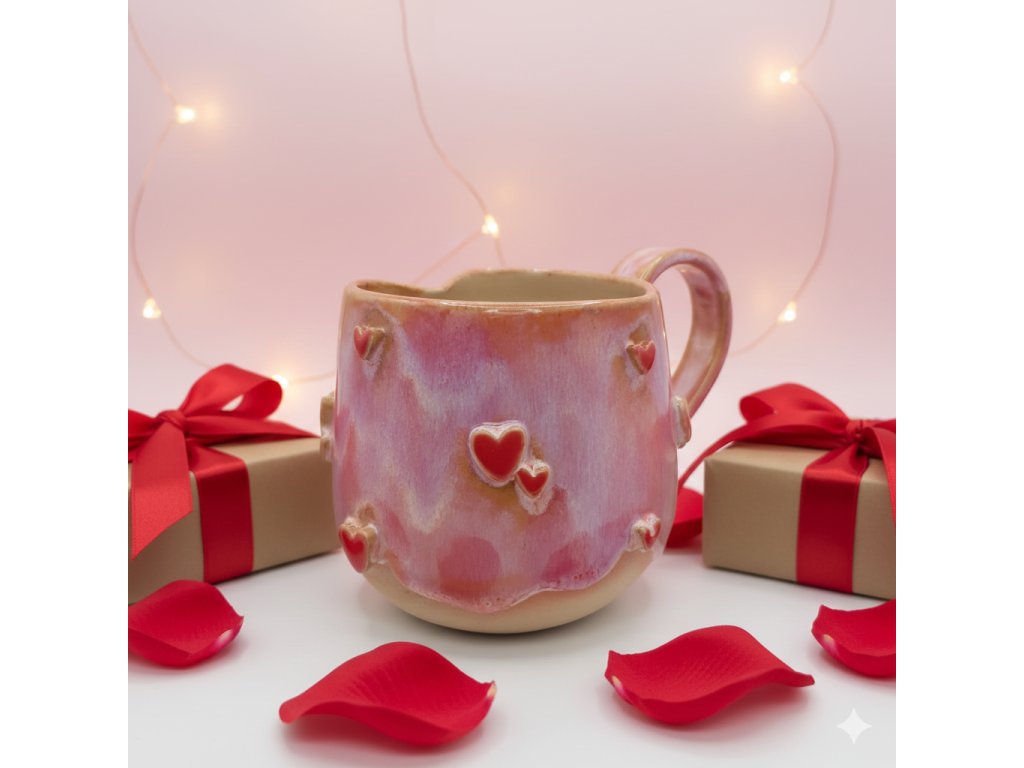 Udělejte si chvilku pro sebe nebo obdarujte někoho, na kom vám skutečně záleží. Tento ručně modelovaný keramický hrneček v sobě spojuje hřejivost přírodní hlíny a něhu valentýnských barev. Dominantou je bohatá růžová glazura, která stéká po stěnách jako sladká poleva a dává vyniknout hravým, ručně lepeným srdíčkům.